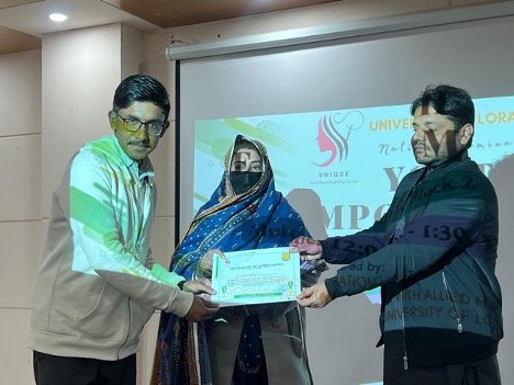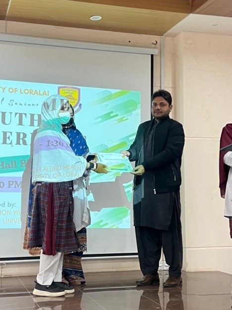 The students of Allied Health Sciences, BS Anesthesia Technology (2nd Batch) organized a seminar titled “Youth Empowerment” in collaboration with UVTC, Loralai. The seminar aimed to motivate young students, enhance awareness about personal and professional development, and encourage them to play an active and positive role in society. The session provided an engaging platform for discussion, inspiration, and knowledge sharing, reflecting the students’ initiative and commitment toward leadership and community engagement.
